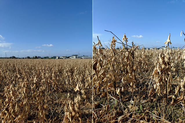 カメムシに関しては防除を9月中下旬の結莢期・子実肥大期に1回から2回適期に実施したのでミナミアオカメムシの吸汁害による青立ちも少なく、枯れあがりはそこそこ均一になりました。