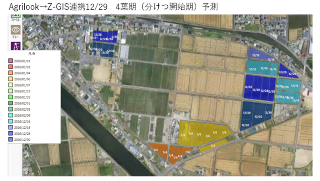 また、愛知県農業試験場が開発したAgrilookとZ-gisを連携していただいているのでそちらの生育予測も更新されました。