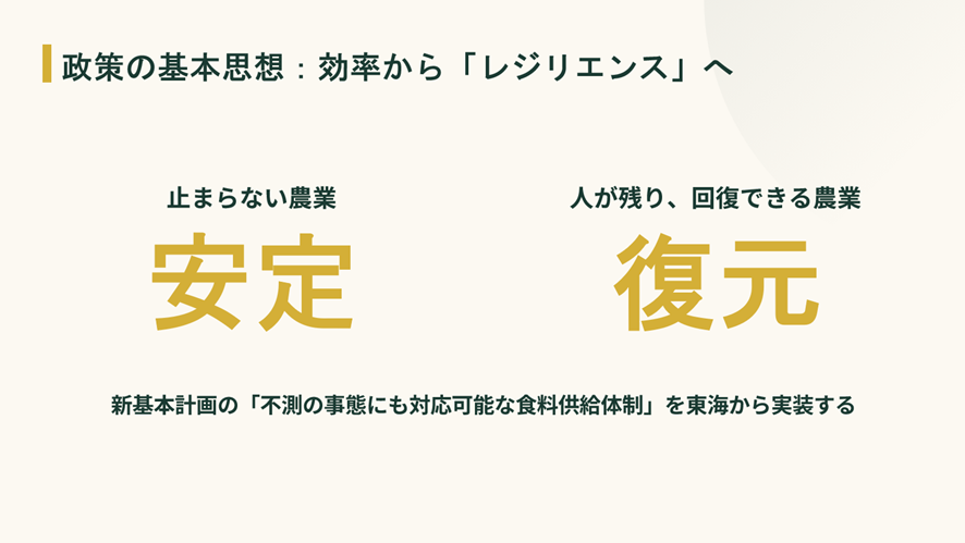 今回の食糧・農業・農村基本計画では細かくKPIが設定されていますが、何かその次のフェーズへの道筋が弱い様に思います。
