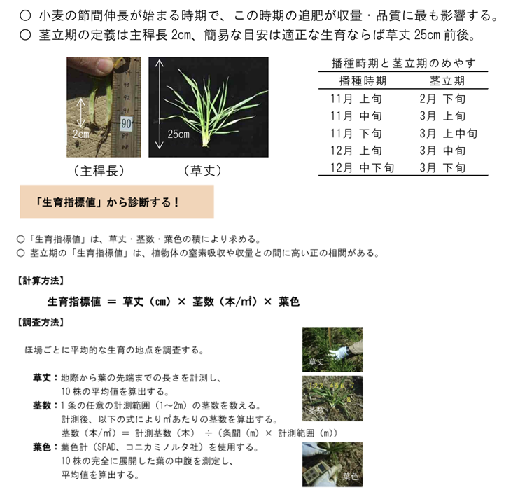 生育指標値から生育診断し施肥量を算出する方法も紹介されています。