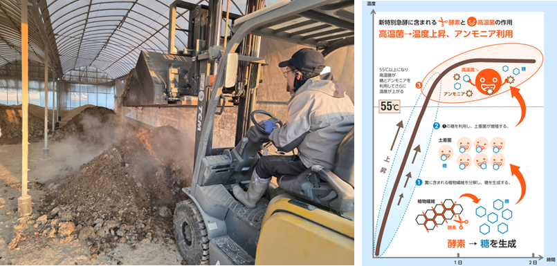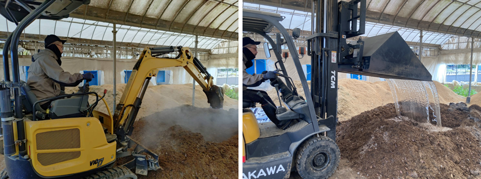 この後もう一度、加水・切り返しを行いフレコン詰めして熟成させ、来年度の小麦作付け前に散布します。