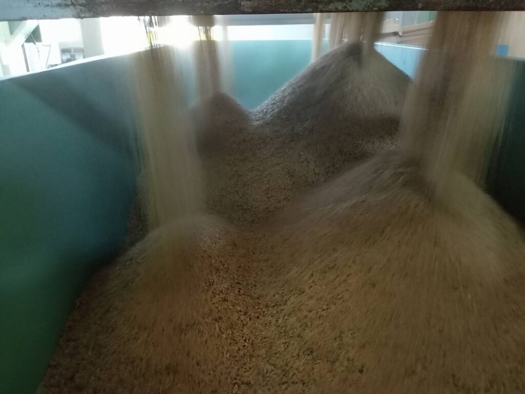 ホッパーから乾燥機へ移動し、水分調整し終わった籾は