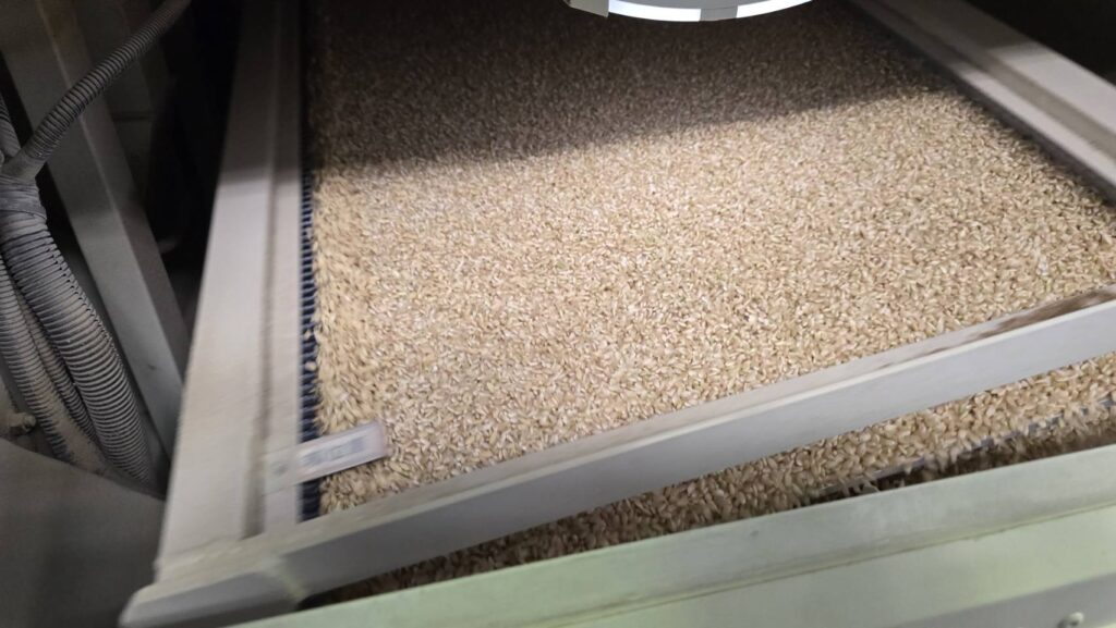 次に冷却タンクへ移動し、籾摺り工程に入ります