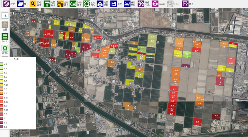米・小麦・大豆と作期毎に土壌診断を実施して、1回につき約15サンプル、年間でおよそ50サンプルのデータを取得しています。