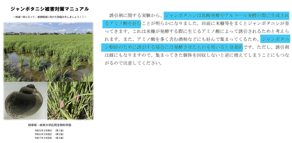 スクミンベイトと同様、ジャンボタニシは鉄分を吸収するとヒドロキシルラジカルを生成するそうですがどれくらい効果があるかは未知数です。