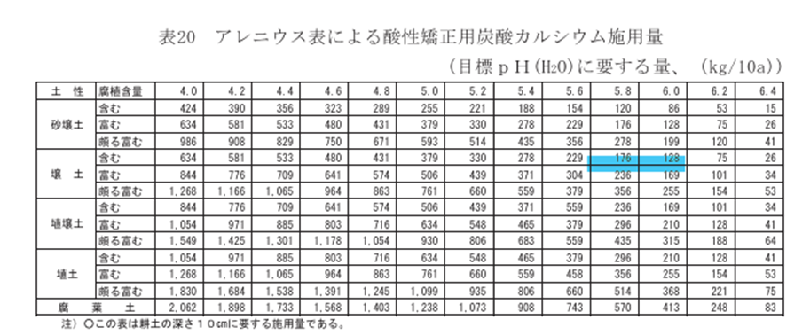 PH5.8を6.0にするために必要なマグカルは169-123=46kgです。