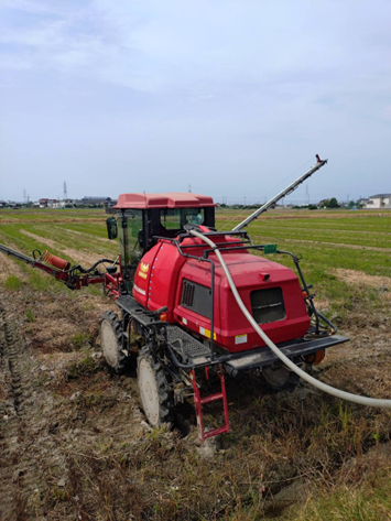 圃場に全面ラウンドアップを散布します。土づくりを意識している圃場はソイルサプリ・PSB・えひめaiも混用散布しました。