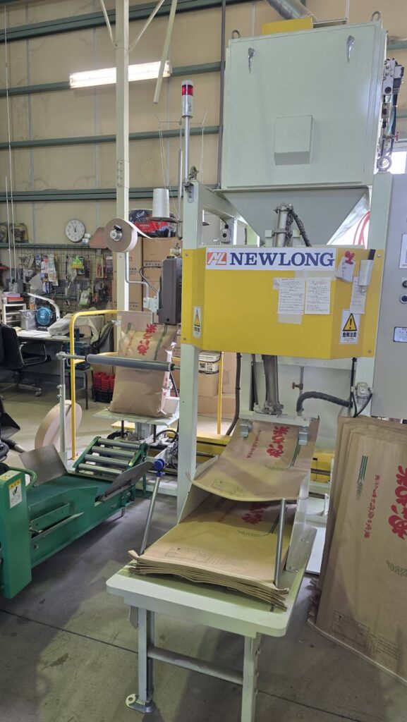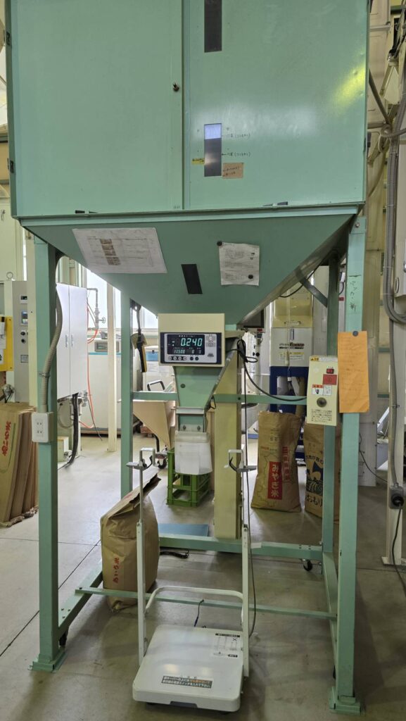 数々の選別機を通り抜けた正統派玄米は、この後計量器で30kgずつ袋詰めされ、